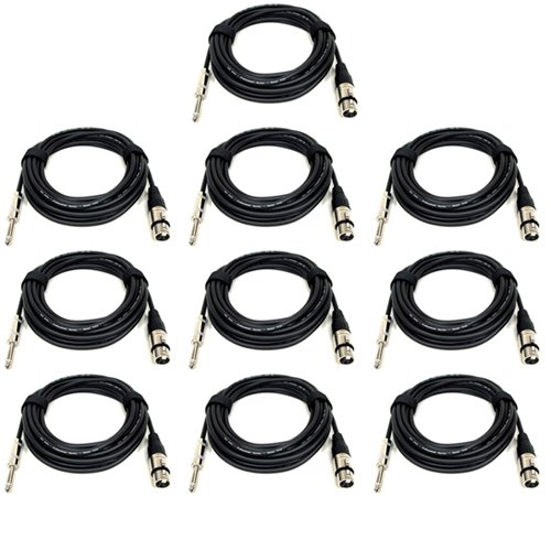 GLS Audio 25ft Mic Cable Cords - XLR Female to 1/4" TS Black Cables - 25' Mono Mike Snake Cord - 10 PACK Reviews